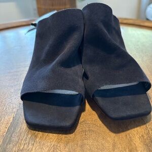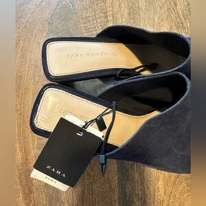 NWT Zara Slide Navy Suede Square Toe Slip On Mule Heel
