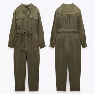 NWT. Zara Modal Blend Belted Long Sleeve Jumpsuit.