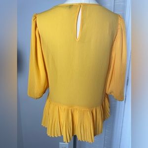 NWT Zara Spring Orange Yellow Flowy Pleated Blouse Top 3/4 Puff Sleeve Small