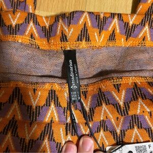 New with tag Zara Stradivarius knit flare pull on pant in an orange purple chevron pattern. Size large