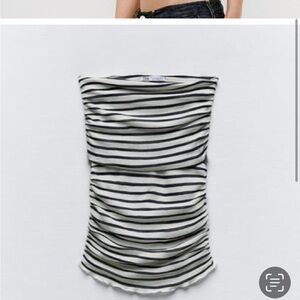 NWT Zara Stripe RUCHED OFF-THE-SHOULDER TOP. Size Medium