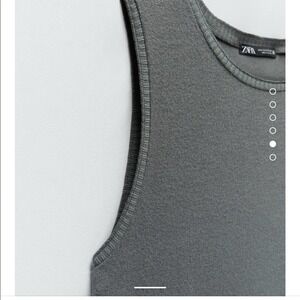 This sleeveless super soft top is a green/grey color. A great basic in a different hue. We are all redefining our wardrobes and need fresh affordable pieces like these for our capsule wardrobe. Brand new with tags.Measurements in photos.