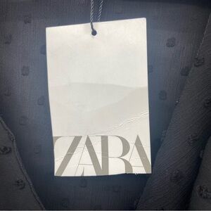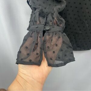NWT Zara Black Sheer Swiss Dot Long Sleeve Ruffle Blouse Size Small