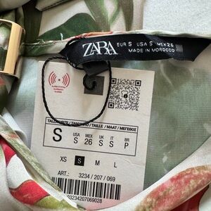 NWT- Zara -TROPICAL PRINT HALTER TOP - Ecru / Green-S