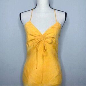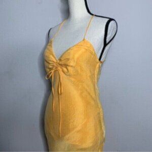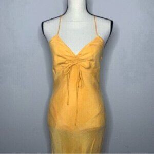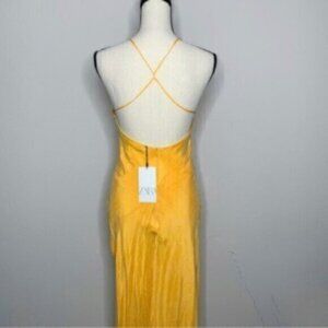 NWT Zara Tangerine Satin Effect Ruched Detail Slip Midi Dress