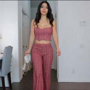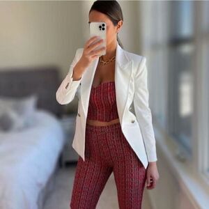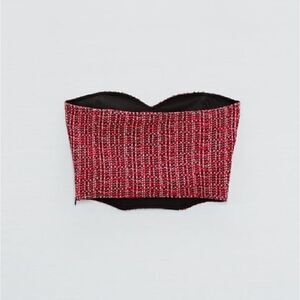 NWT Zara Textured Tweed Corset Strapless Top Size small tweed dark red burgundy