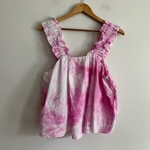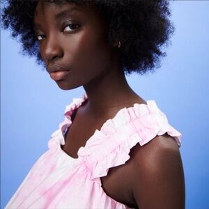 NWT Zara Tie Dye Poplin Top Cotton Candy Pink Women's Size Large Crop Top