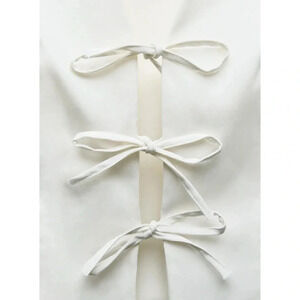 NWT Zara Tied Stretch Top Tie Front Sleeveless White Ecru