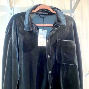 NWT Zara Velvet Jacket in Dark Gray Sz M