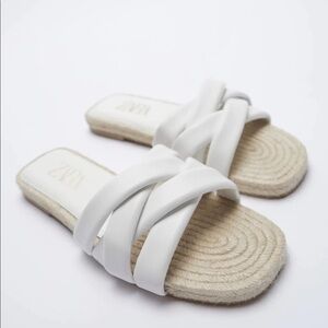 Bundle any 2 items marked 🌹 for $45! NWT. Zara White Leather Sandals. White Quilted Flat Leather Sandals. Size 8. Ref 2645/710. SH 19