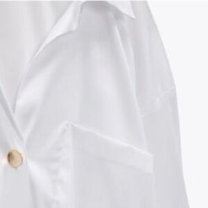 NWT. Zara White Long Blouse with Gold Buttons. Size M.