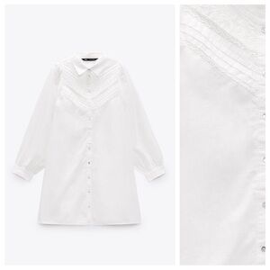 NWT. Zara White Poplin Shirt Button Up Dress. Size L.