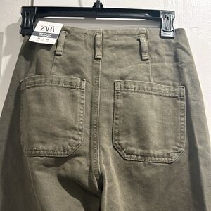 NWT Zara Wide Leg Cropped Army Green Jeans, Size 0
