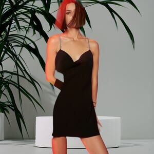 NWT - Zara Woman Draped Jewel Chain Satin Look Black Dress Size: Small