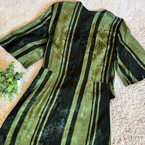 NWT Zara Woman Green & Black Stripe Print Faux Wrap Tie Front Dress - Small