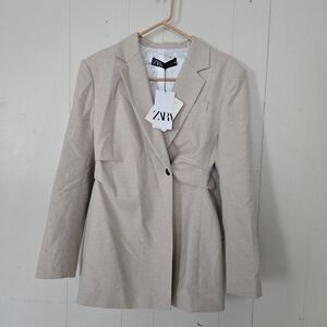 NWT Zara Women's Blazer Gathered Waist Jacket -Size M