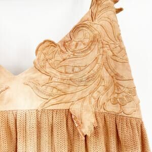 Zara Womens Boho Vacation Embroidered Knit Tie Dye Maxi Dress in Beige. Size Small.