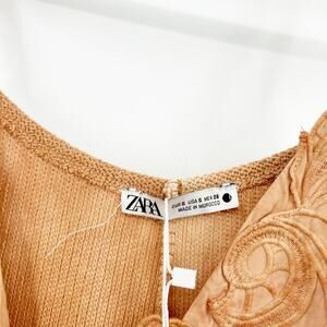 NWT Zara Womens Boho Vacation Embroidered Knit Tie Dye Maxi Dress Size S Beige