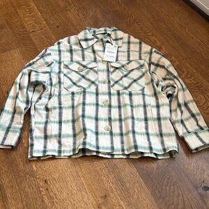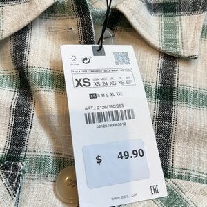 NWT Zara Women’s Flannel White and Green Size XS