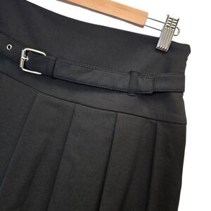 NWT Zara Womens M Box Pleated A-Line Belt Buckled Black Mini Skort 3067/538/800
