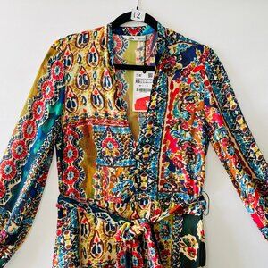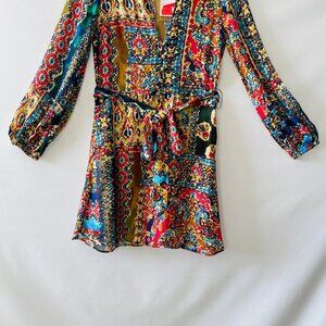 NWT Zara Womens Multicolor Mixed Paisley Boho Fit & Flare Mini Dress Size XS