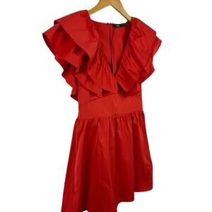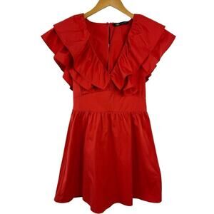 NWT Zara Womens Red Ruffle Mini Dress Blogger Favorite Small 1971/154/649