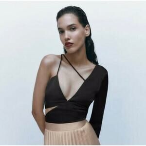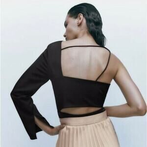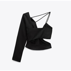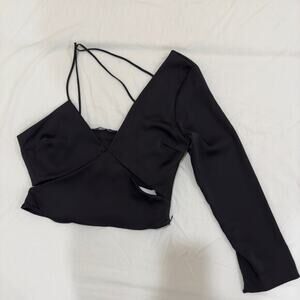 NWT Zara Womens Size Large Asymmetric Satin V-Neck One Shoulder Blouse Black