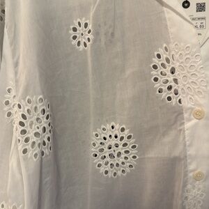 Elegant white button-up top with delicate detailing. Perfect for any occasion.