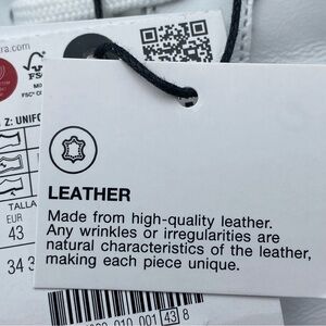 NWT. Zara Women's White Leather Uniform Sneakers. Size 11, 12, 13.