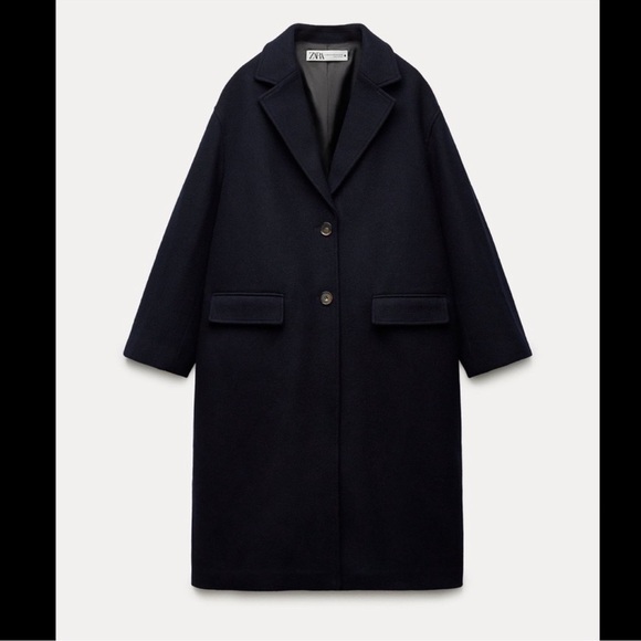 ✨ Brand New with Tags — Zara Wool Blend Oversized Long Coat in a timeless navy blue. This minimalist, tailored silhouette features a notched lapel collar, two-button front closure, and functional flap pockets for a clean, elevated look. Designed with a slightly oversized fit, perfect for layering over sweaters and dresses.