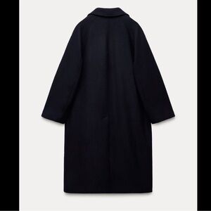 NWT Zara Wool Blend Oversized Long Coat Navy Blue Minimalist Chic Sz XS-S