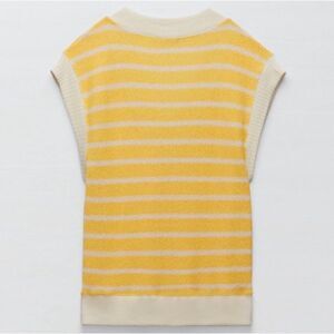 NWT Zara Yellow & White Striped Oversized V-Neck Knitted Sweater Vest, Medium