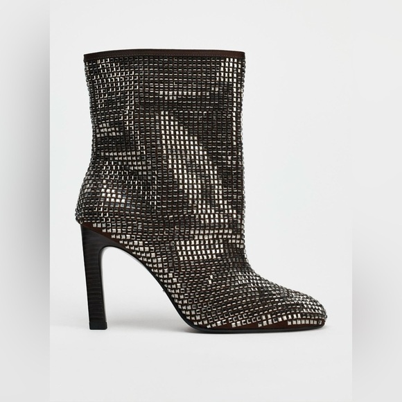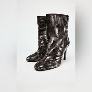 NWT Zara ZW Collection Rhinestone High Heeled Boots size 38
