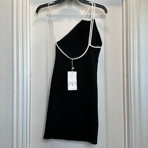 NWT!! Stock pic is only for fit not actual dress!!Zara black and white one shoulder mini dress Sz Small
