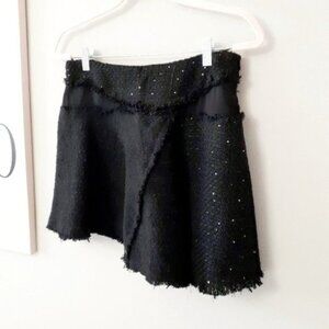 NWT Zara black textured sequin and semi-sheer frayed mini skirt