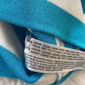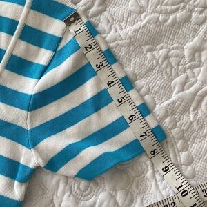 NWT Zara cropped sweater top. Short sleeves and a square neckline. Blue and white stripes in a mid weight sweater knit made of viscose and polyamide. Fabric is stretchy. Size L.