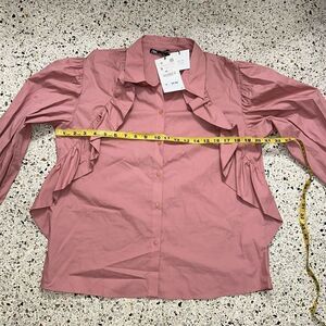 NWT Zara pink ruffle front button up down shirt top small s