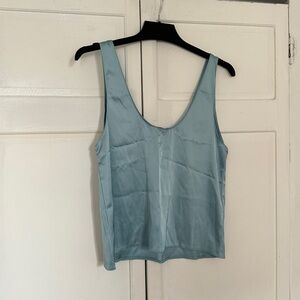 Chic satin camisole with a soft sheen. Sleeveless design for versatile styling.