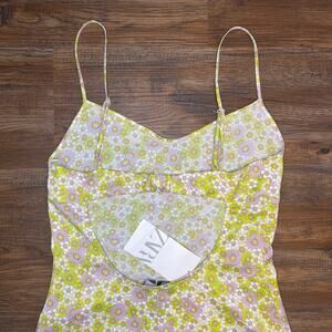 NWT Zara slip dress floral retro 60s 70s hippie spaghetti strap size SMALL *flaw