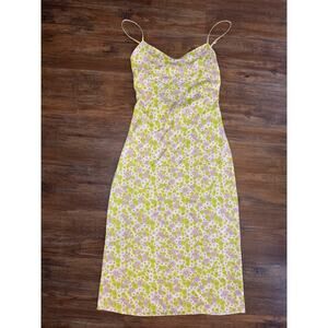 NWT Zara midi slip dress floral retro 60s 70s hippie spaghetti strap size SMALL *flaw