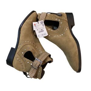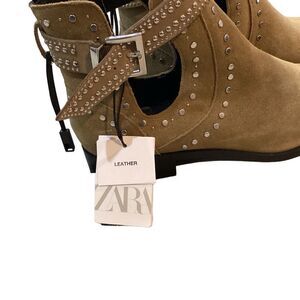 NWT Zara studded leather suede cutout ankle boots size 9