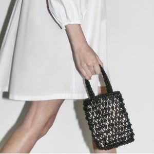 ❤Black bowling back with hooks and stud detail. ❤Has handles as well as adjustable and detachable straps. ❤height, width and depth: 14x21x12cm. ❤outer shell : 100% polyutherane.