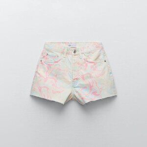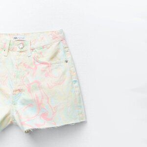 NWT Zara tie dye pastel printed unfinished hem straight fit high waist shorts