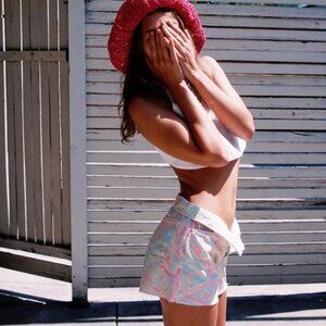NWT Zara tie dye pastel printed unfinished hem straight fit high waist shorts 6