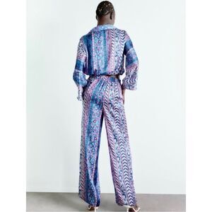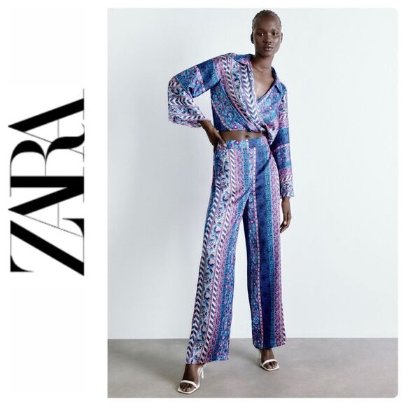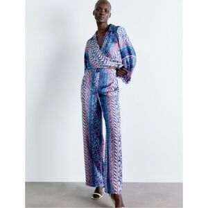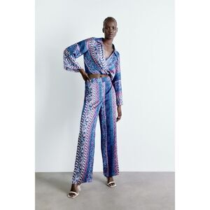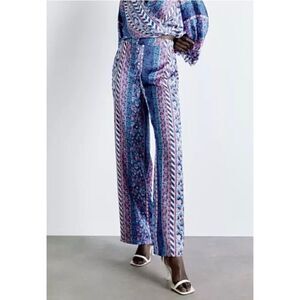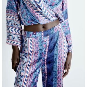 NWT Zara Satin Effect High Waisted Wide Leg Printed Pants, Size Medium