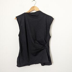 NWT Zara charcoal dark grey wool sleeveless draped ruched button back blouse top