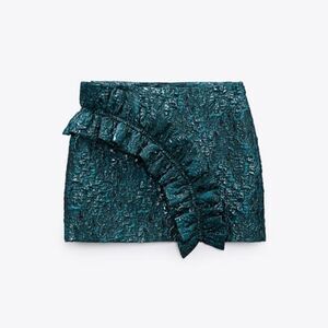 NWT Zara nwt green jacquard skirt Zara Teal Metallic Ruffle Mini Skirt XS