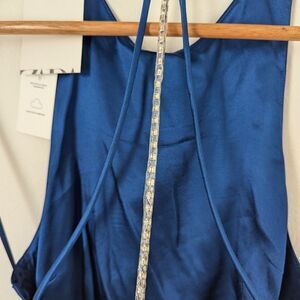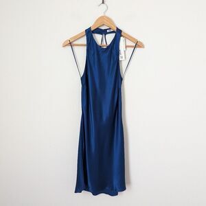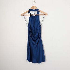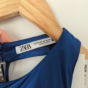 NWT Zara royal blue satin open cowl drape back crystal drop mini cocktail dress
