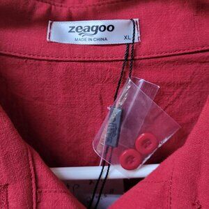 NWT Zeagoo 100% Cotton Red Button Up Shirt XL | New with Tags | Short Sleeve | C