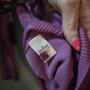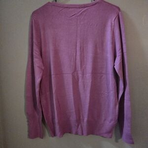 Chic lavender sweater with buttoned sleeves. Soft and stylish for any occasion.